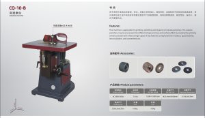 This machine is applicable for grinding, polishing and shaping of outsole periphery. The outsole periphery may be processed into different shape and size and surface effect by rotating the grinding wheel and diamond wheel at high speed. It has features as high precision rotation, good stability, less oscillation, and convenient use.